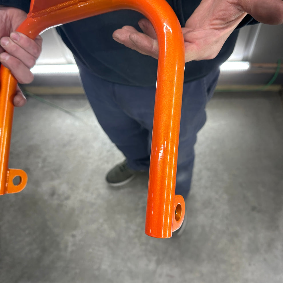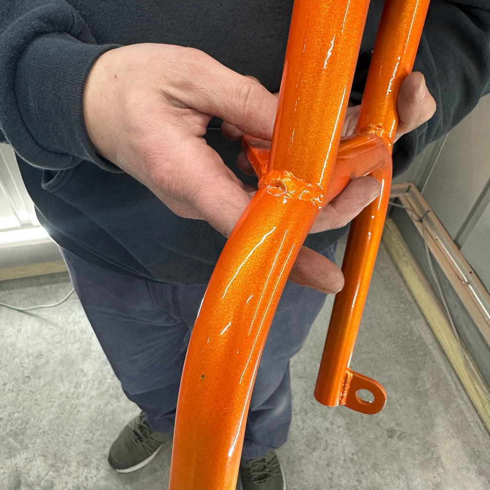These forks were F’d up personally by TGV_Mike. They show flaws in the powder that didn’t meet the high standards of TGV to be used on a mini trike. This would make for a great man cave addition, a custom lamp, or anything else you can think of! This is a 1 of 1 work of art and when it’s gone it’s gone!
